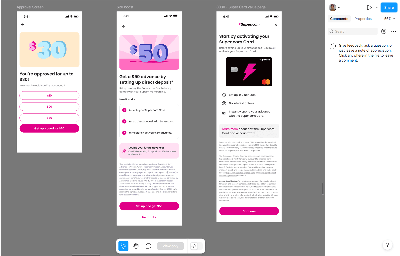 Super.com is a fintech and travel app offering cash advances, travel savings, and a paid membership (Super+). At the time, I was the sole content designer, partnering primarily with the Cash Advance and Direct Deposit teams.
