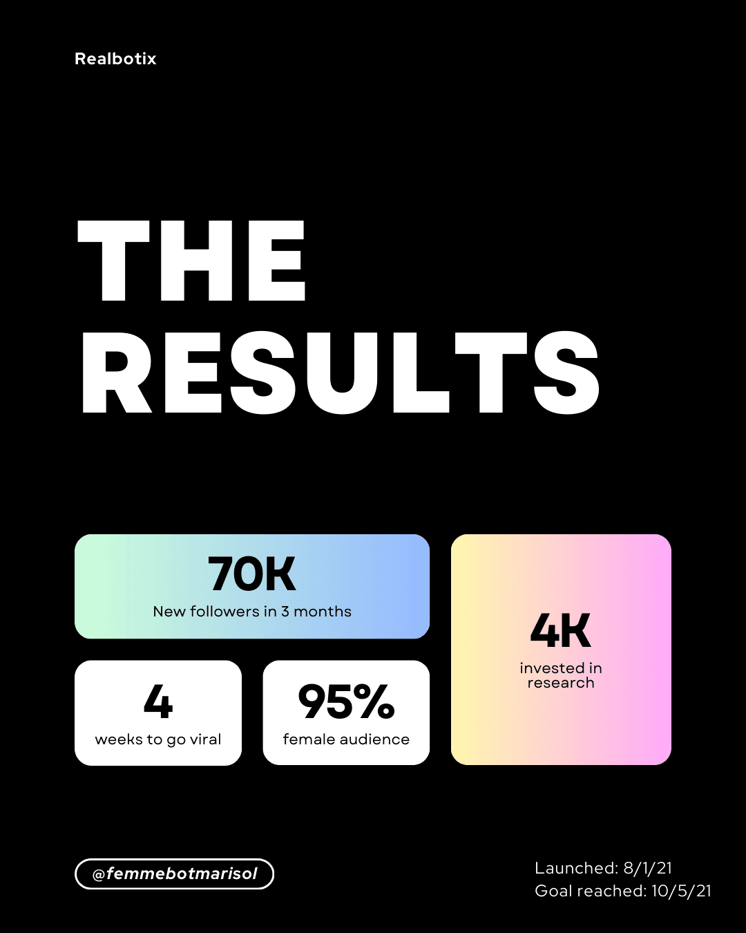 We spent the first two weeks testing out different looks, angles, and ways of filming and telling the robots story, keeping track of what content performed well and what didn’t.